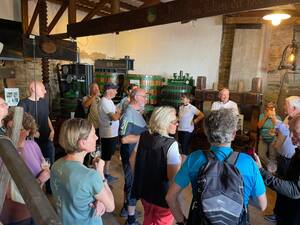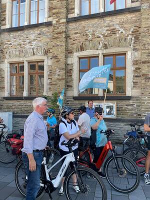 Auf der ersten Etappe machten sie eine Zwischenstation in unserem Museum. Ein Glas Winninger "Hexenwein" erfrischte die Radler und wir gaben zu den vielen Fragen rund um unsere Museum und das museale Angebot, aber auch zu Winningen selbst und seinen Weinen Auskunft. Nach gugt einer Stunde setzte sich die Karawane wieder in Bewegung und nahm viele positive Eindrücke aus unserem Ort mit!